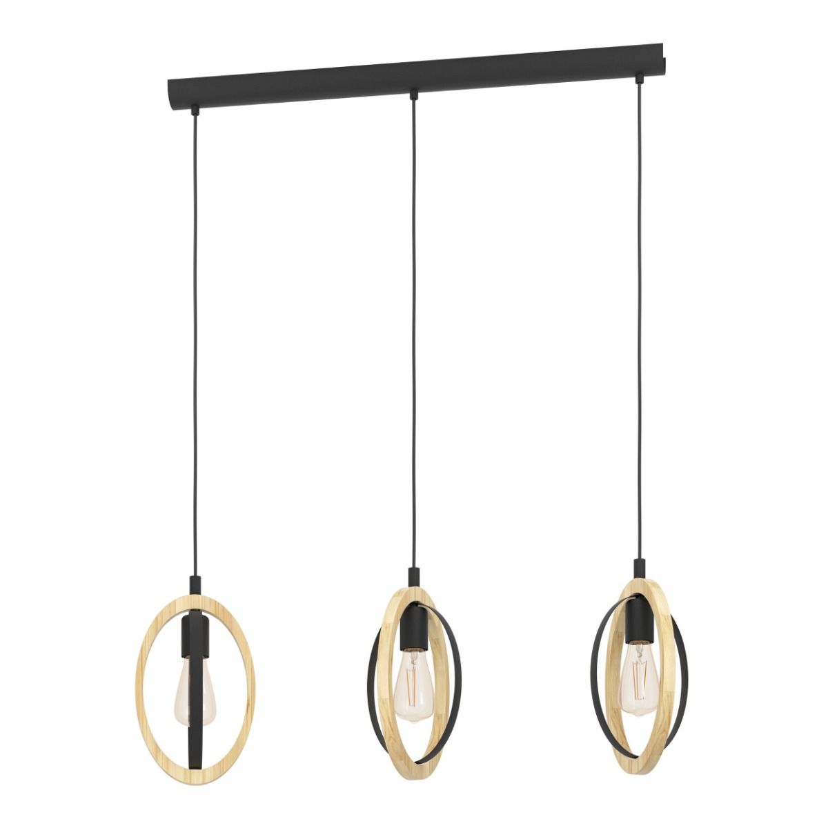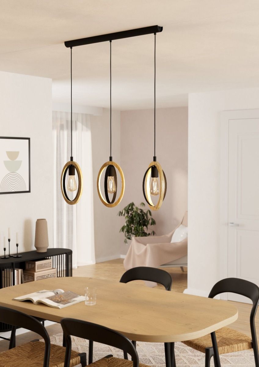 Φωτιστικό Κρεμαστό Τρίφωτο Ράγα L780xH1100mm 3xE27 Μέταλλο Μαύρο-Ξύλο Eglo Basildon 43462