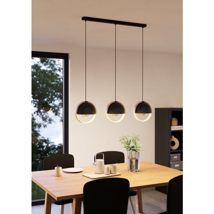 Φωτιστικό Κρεμαστό Τρίφωτο Ράγα L930xH1100mm 3xE27 Μέταλλο-Ξύλο Eglo Callow 43756