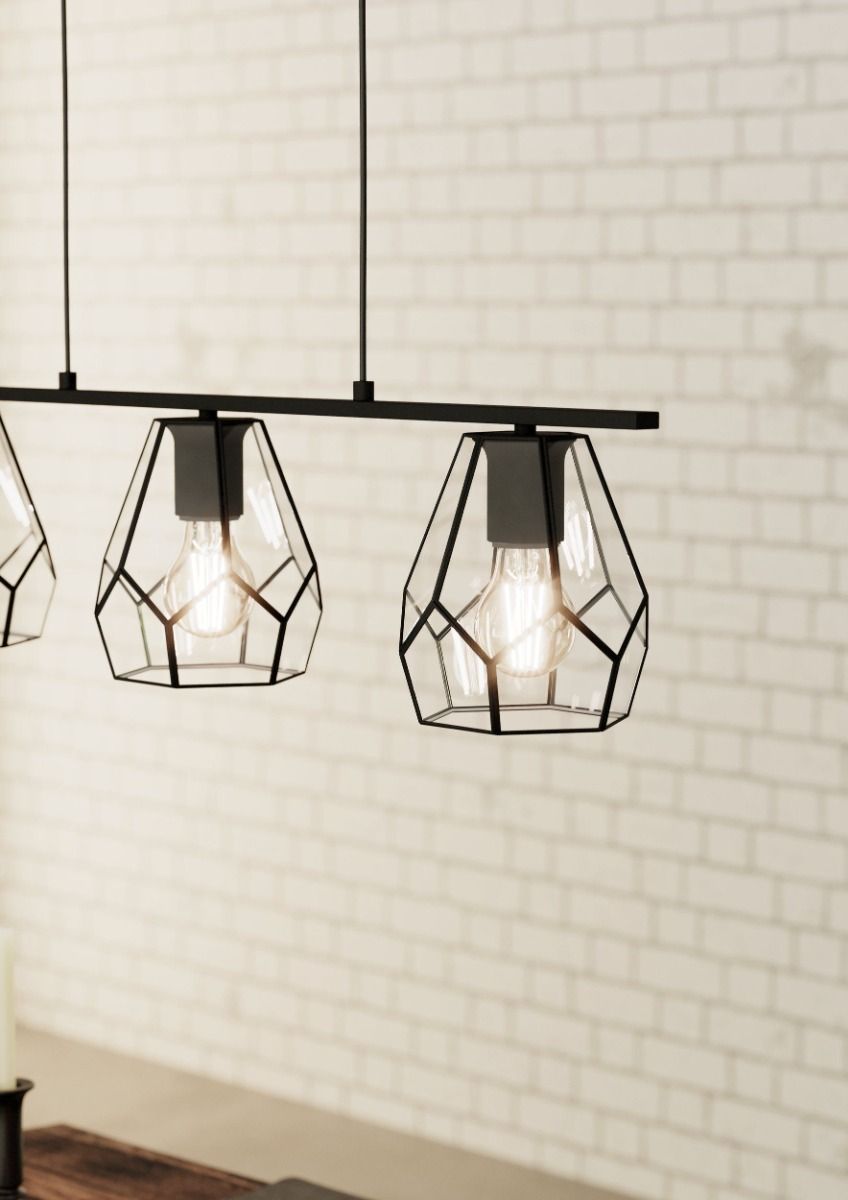 Φωτιστικό Κρεμαστό Τρίφωτο σε Ράγα L775xH1100mm 3xE27 Μαύρο Μέταλλο-Γυαλί Eglo Mardyke 43644