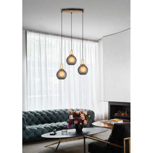 Φωτιστικό Κρεμαστό Τρίφωτο σε Ροζέτα Ø42,50 εκ. 3xE27 Γυαλί & Χρυσή Ανάρτηση Viokef Doria 4249700