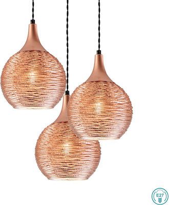 Φωτιστικό Κρεμαστό Τρίφωτο σε Ροζέτα Ø32 εκ. Χάλκινο Γυαλί Ανάρτηση Μαύρη με χάλκινες λεπτομέρειες Viokef Fiona 3089500