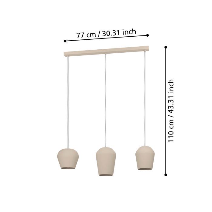 Φωτιστικό Κρεμαστό Τρίφωτο L895xH1100mm 3xΕ27 Αμμώδες Eglo Cambaito 900143