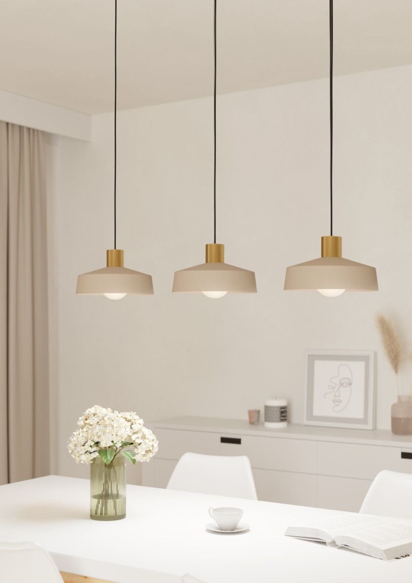 Φωτιστικό Κρεμαστό Τρίφωτο L930xB230xH1100mm 3xΕ27 Απόχρωση Άμμου-Βουρτσιστός Ορείχαλκος Eglo Valdiola 900431