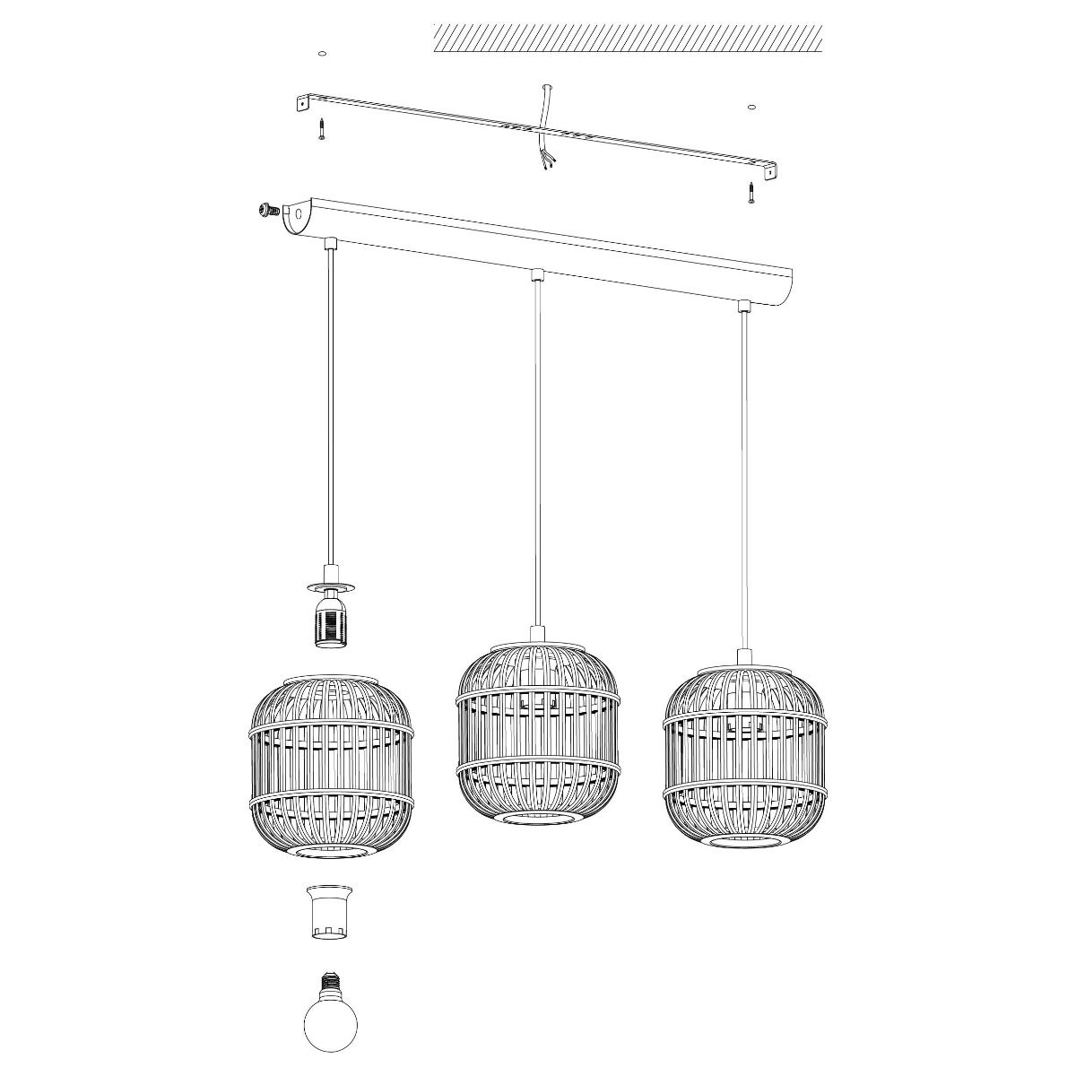Φωτιστικό Κρεμαστό σε Ράγα L910xH1100mm 3xE27 Ξύλο-Μαύρο Eglo Bordesley 43217
