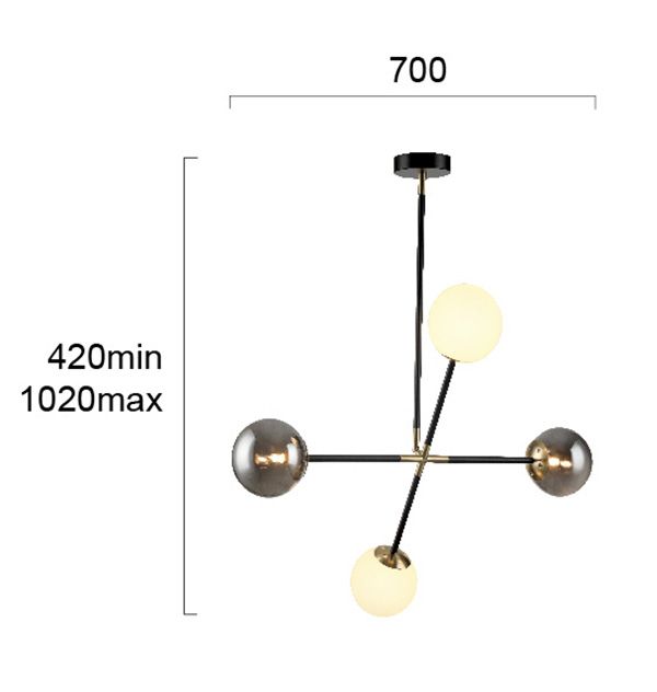 Φωτιστικό Κρεμαστό Ø70 εκ. Y 42cm min-102cm max Τετράφωτο 4xG9 Γυαλί Φυμέ & Λευκό -Ανάρτηση Μαύρο-Χρυσό Viokef Cross 4254800