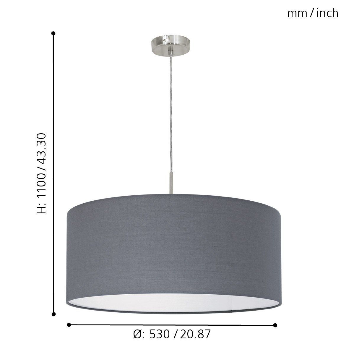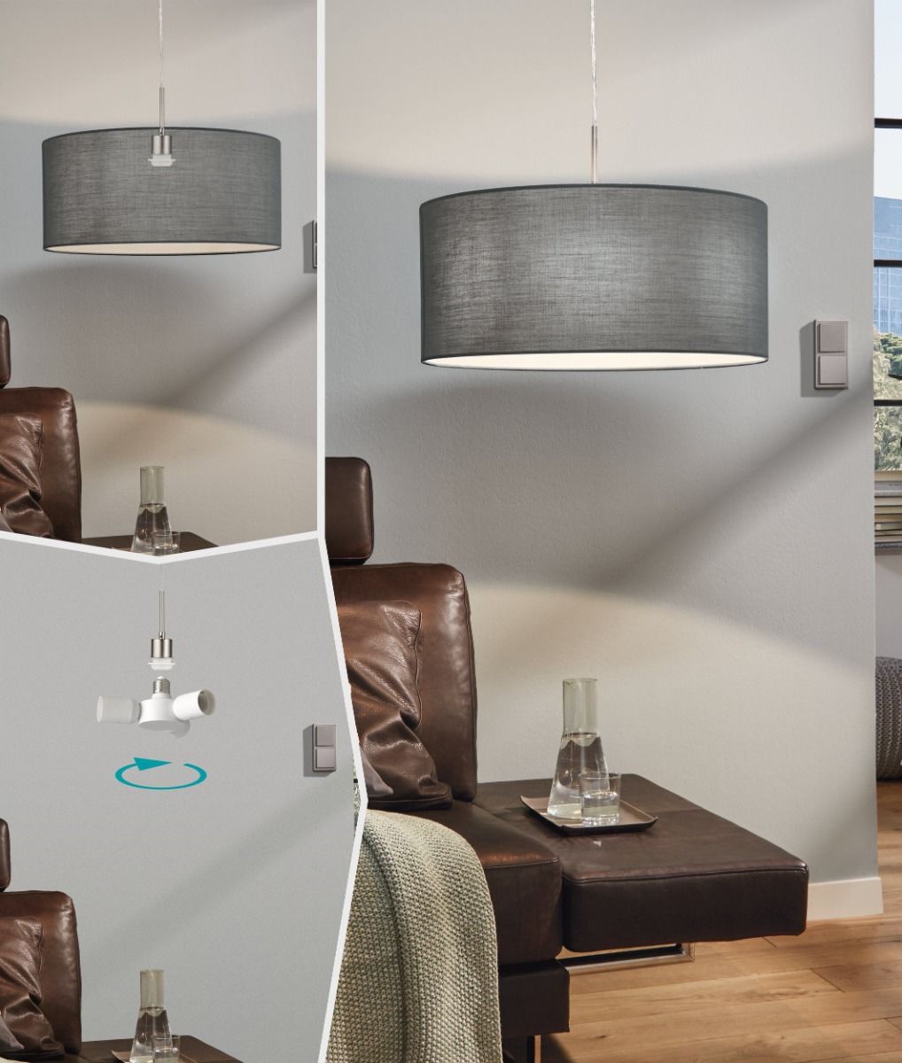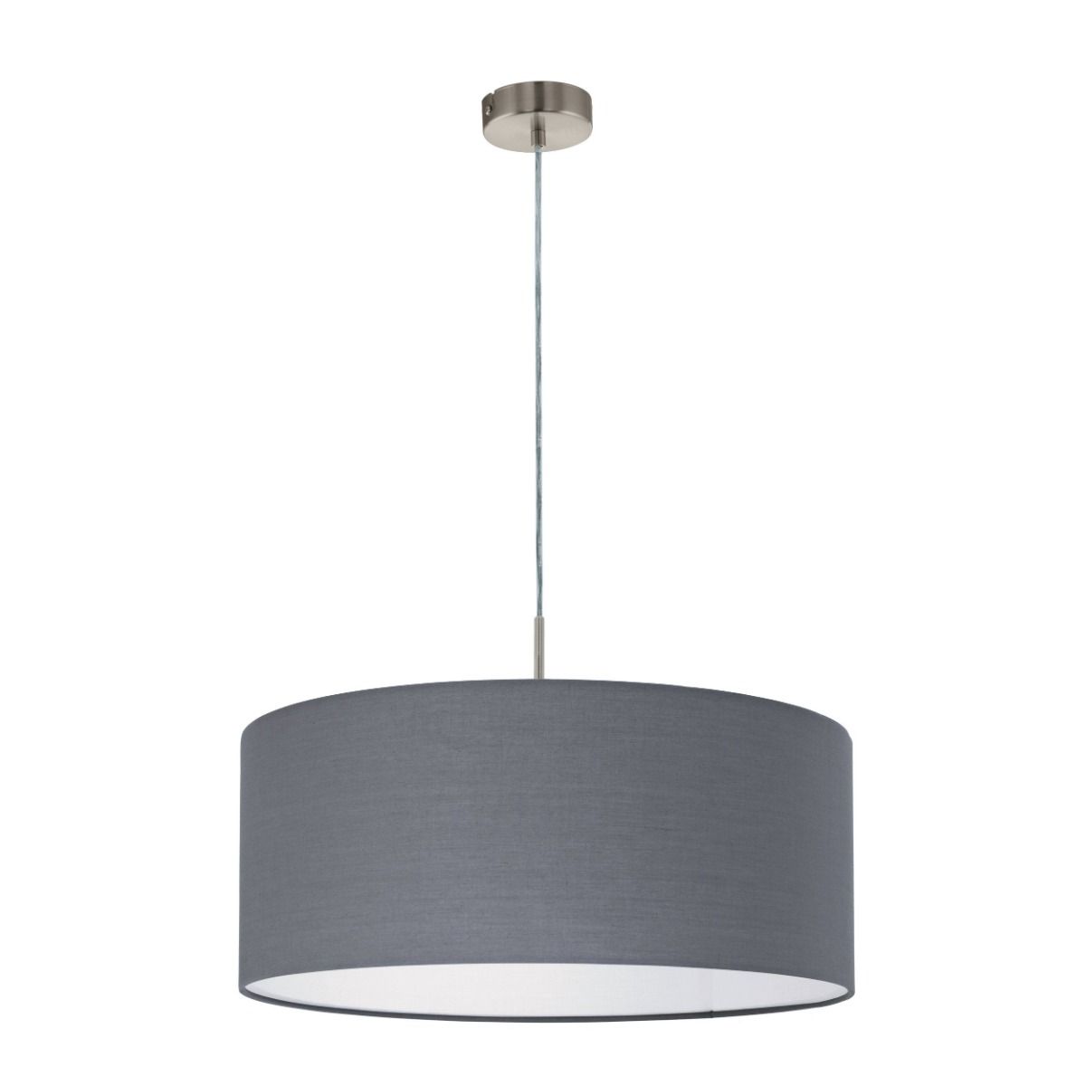 Φωτιστικό Κρεμαστό 1xE27 Ø530xH1100mm Νίκελ Ματ- Ύφασμα Γκρι Eglο Pasteri 31577