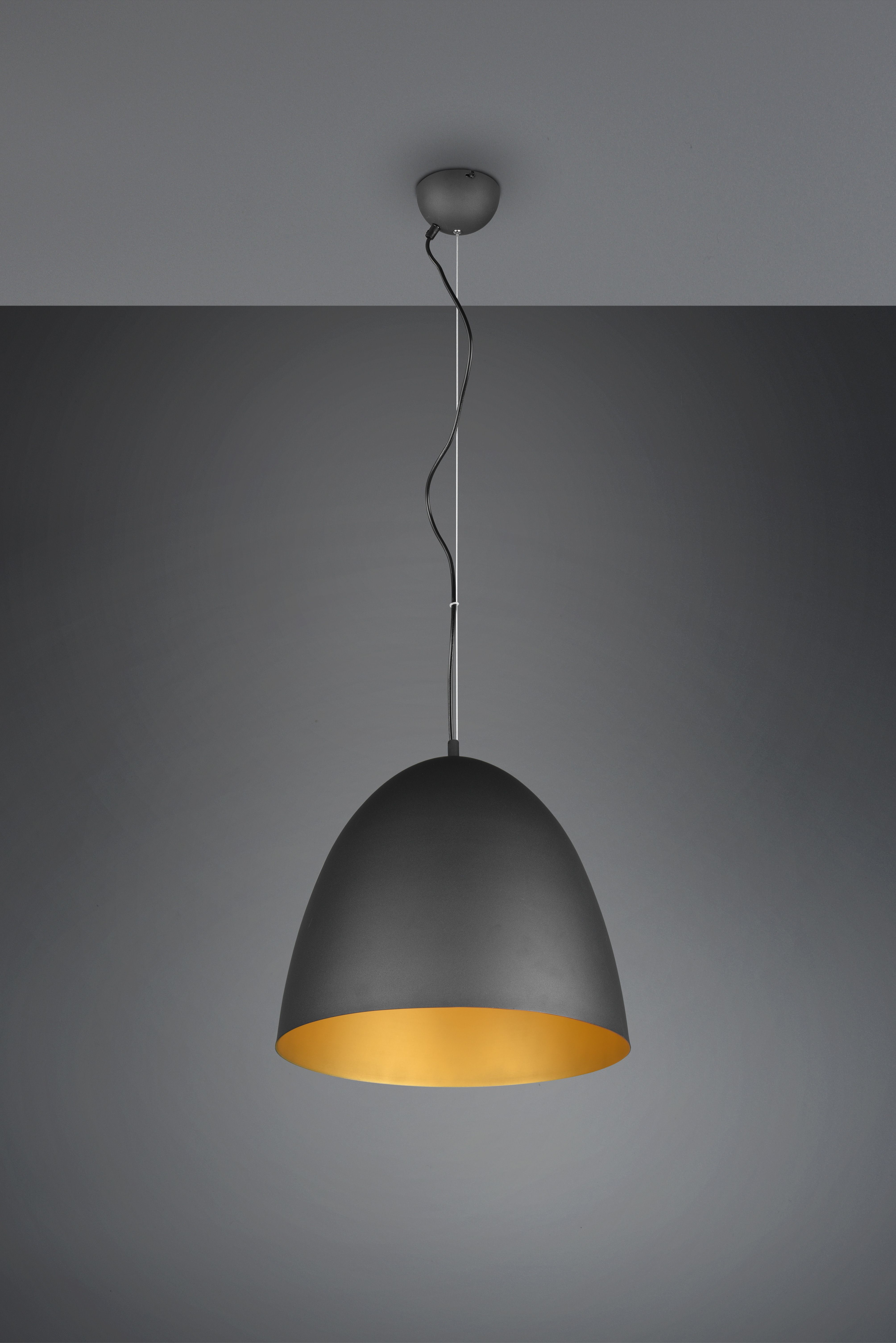 Μονόφωτο κρεμαστό φωτιστικό καμπάνα από την εταιρεία Trio Lighting σε μαύρο χρώμα, με υποδοχή για έναν λαμπτήρα και ντουί E27. Είναι κατασκευασμένο από μέταλλο, ένα υλικό δημοφιλή στα κρεμαστά φωτιστικά οροφής, καθώς πέρα από τη μοντέρνα νότα που προσφέρει, είναι ιδιαίτερα ανθεκτικό στον χρόνο. Καθαρίζεται εύκολα με ένα πανί.