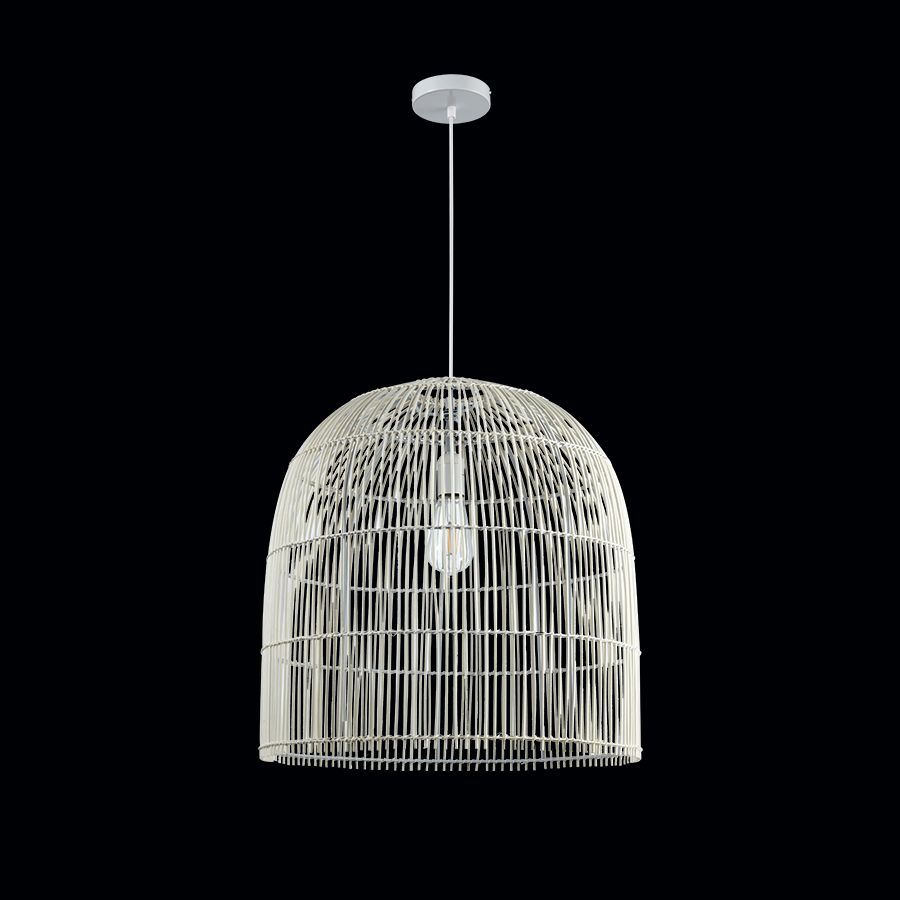 Κρεμαστό μονόφωτο φωτιστικό κατασκευασμένο από rattan σε λευκό χρώμα.