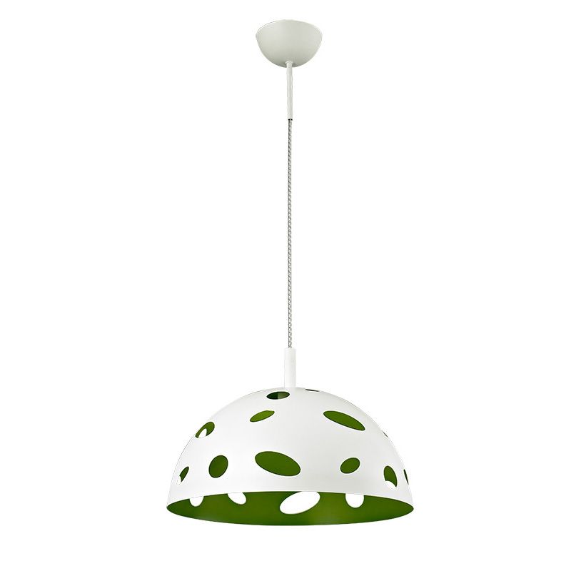 Μονόφωτο μεταλλικό και διάτρητο φωτιστικό . Λευκό εξωτερικά και πράσινο εσωτερικά.