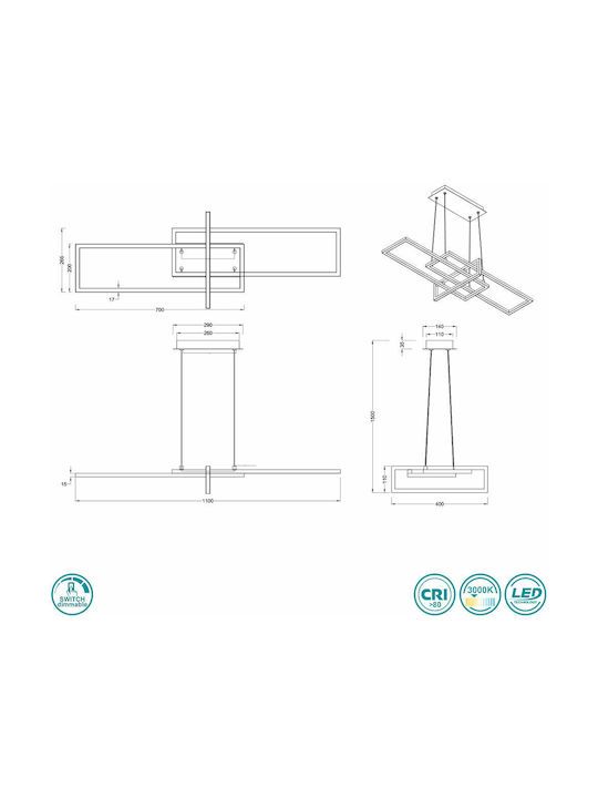 Φωτιστικό Κρεμαστό L110x40xH150cm Smd Led 34w 4200lm 3000K Brass Mat -Black Mat Trio Salinas 320310308