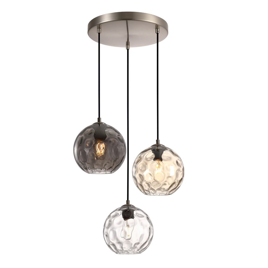Πολύφωτο-κρεμαστό φωτιστικό κατασκευασμένο από χειροποίητα γυαλιά και μεταλλική βάση σε νίκελ ματ.Ύψος: 120 εκ.Διάμετρος: 30 εκ.Λαμπτήρες: 3 τεμ.Τύπος Λαμπτήρα: Ε27Watt: 60| Χρώμα | Ασημί-Χρωμέ-Inox-Nickel-Αλουμίνιο |
