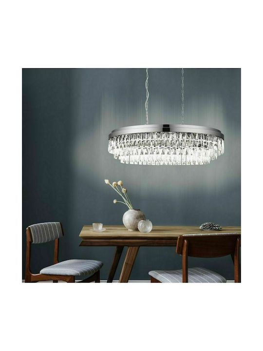 Φωτιστικό Κρεμαστό L900xB300xH1100 mm 10xE14 Χρωμέ -Διάφανα Κρύσταλλα Eglo Valparaiso 1 39494
