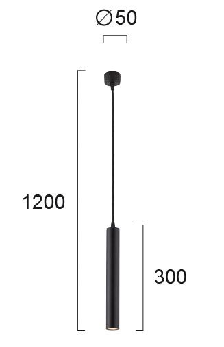 Διαστάσεις: Ø50 x Η 1200mm Ύψος Σώματος Φωτιστικού 300 mm