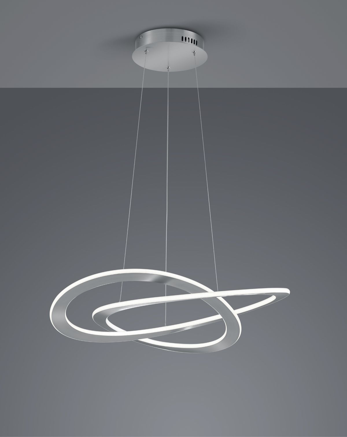 Kρεμαστό φωτιστικό με ενσωματωμένο LED από την εταιρεία Trio Lighting σε ασημί χρώμα. Είναι κατασκευασμένο από μέταλλο, ένα υλικό δημοφιλή στα κρεμαστά φωτιστικά οροφής, καθώς πέρα από τη μοντέρνα νότα που προσφέρει, είναι ιδιαίτερα ανθεκτικό στον χρόνο. Καθαρίζεται εύκολα με ένα πανί. Τέλος, το LED εκπέμπει θερμό λευκό φως, το οποίο αποδίδεται στην κλίμακα Kelvin με τιμές από 2400Κ έως 3500Κ. Αυτοί οι τόνοι του λευκού είναι πιο κίτρινοι σε σχέση με το φυσικό φώς.