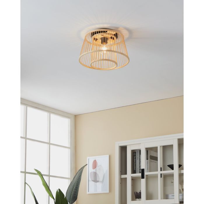 Φωτιστικό Οροφής Ø380xH210mm 1xE27 Μπαμπού-Μαύρο Eglo Hykeham 43851