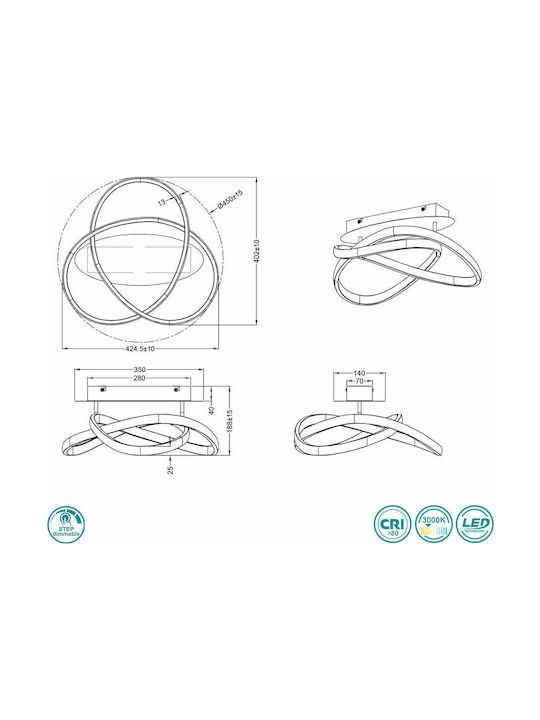 Φωτιστικό Οροφής L57,5x35,5xH7,5cm SMD Led 25w 4000K 3000lm Μέταλλο Chrome Trio Lighting RL Venida R62793406Ειδική Τιμή 110,00 € Κανονική τιμή 161,00 € -