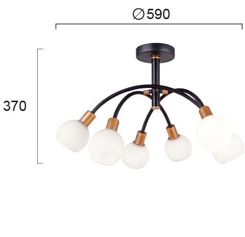 Φωτιστικό Οροφής Εξάφωτο Ø59 εκ.6xΕ14 Μαύρο-Χρυσό-Οπάλ Γυαλί Viokef Elisa 4215100