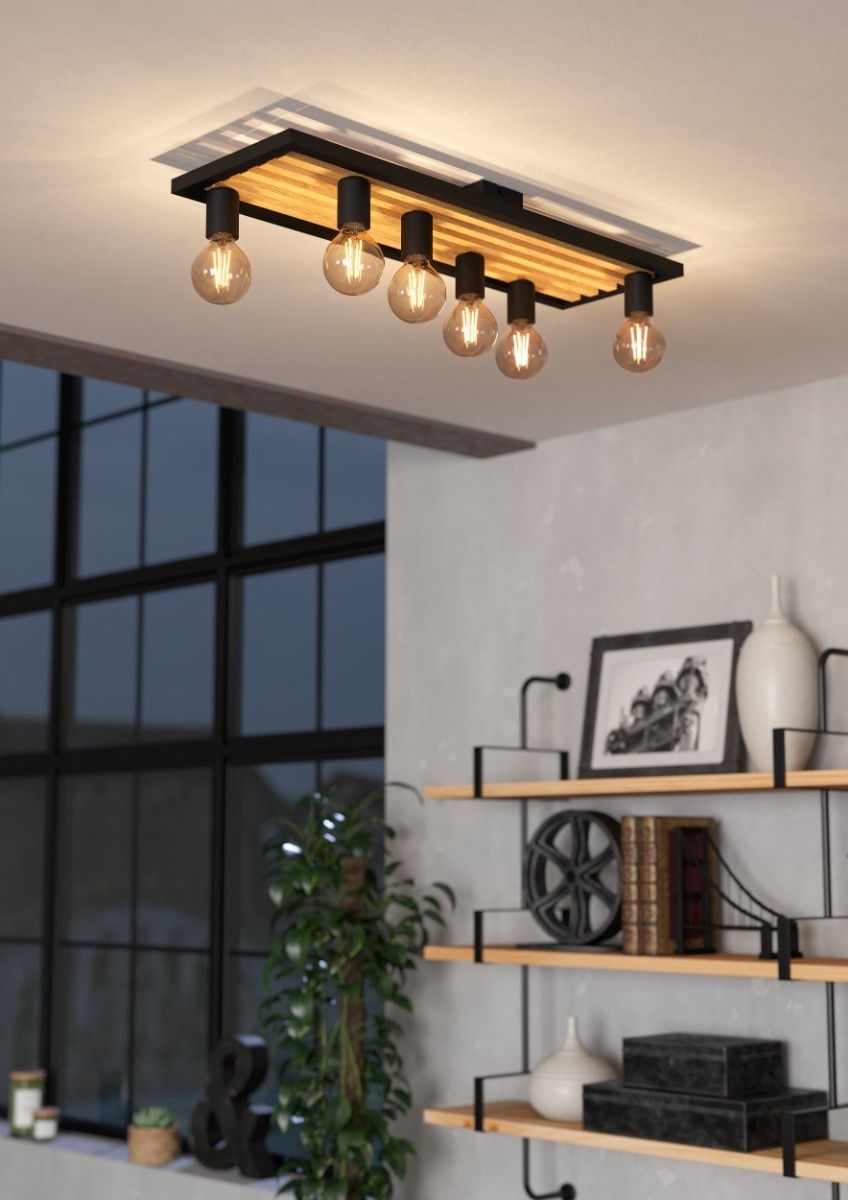 Φωτιστικό Οροφής Εξάφωτο L780xB250xH115mm 6xE27 Μέταλλο Μαύρο-Ξύλο Φυσικό Eglo Consett 43724