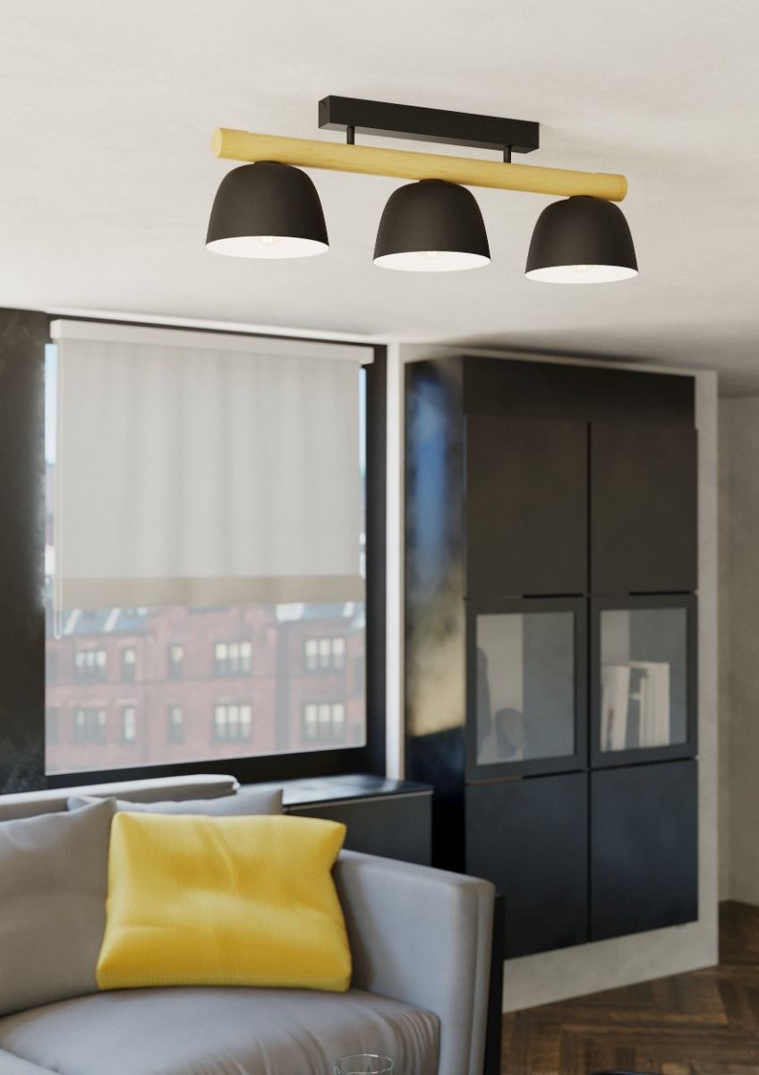 Φωτιστικό Οροφής Τρίφωτο Ράγα L800xH255mm 3xE27 Μέταλλο-Ξύλο Eglo Sheburn 43738