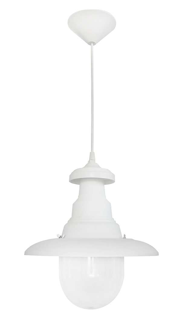 Κρεμαστό φωτιστικό πυροφάνι FLP-100K WHITE Τεχνικά χαρακτηριστικά Χρώμα White / Λευκό Πλαστικό με πολυκαρμπονάτο γυαλί Η90cm x Φ29,5cm E/27 max 10w LED IP33 Ελληνικό Προϊόν