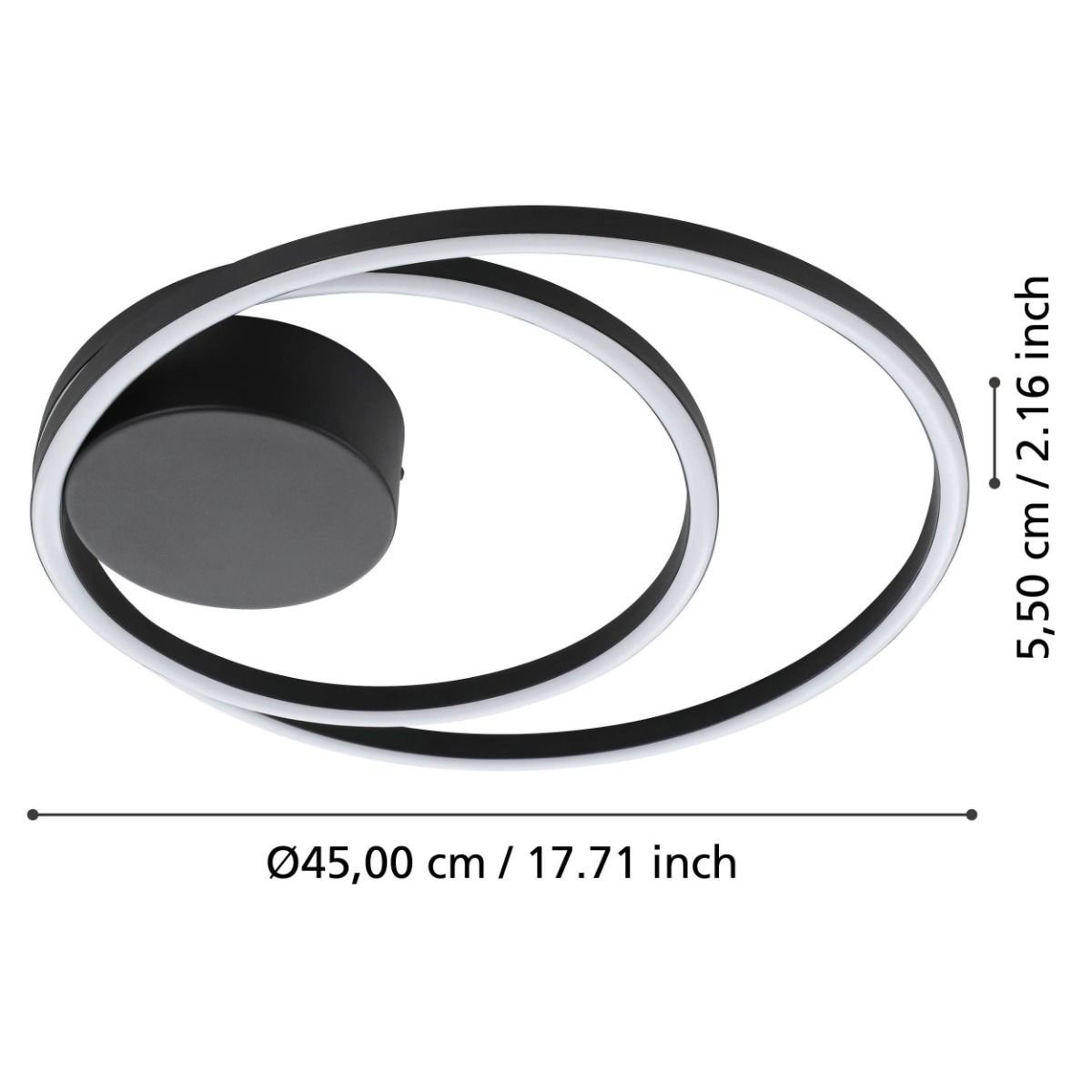 Φωτιστικό Πλαφονιέρα Οραφής 45xH5,5cm Μαύρο LED 3000Κ 4400lm Eglo Ruotale 900471