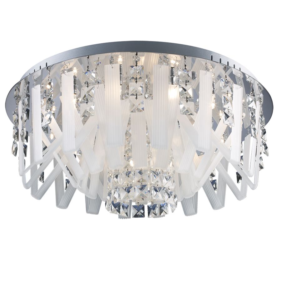 Φωτιστικό οροφής με βάση χρωμίου, αποτελούμενο από χειροποίητο γαλακτερό γυαλί και κρύσταλλα asfour.Υψος: 23εκ.Διάμετρος: 60εκ.Λαμπτήρες: 15 τεμ.Τύπος Λαμπτήρων: G4Watt: 20Volt: 12| Χρώμα | Ασημί-Χρωμέ-Inox-Nickel-Αλουμίνιο |