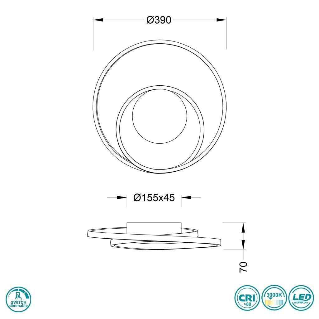 Φωτιστικό Πλαφόν Οροφής Ø39xH7cm Led 22w 2500lm 3000K 46cm Ασημί Trio RL Zibal R62911187