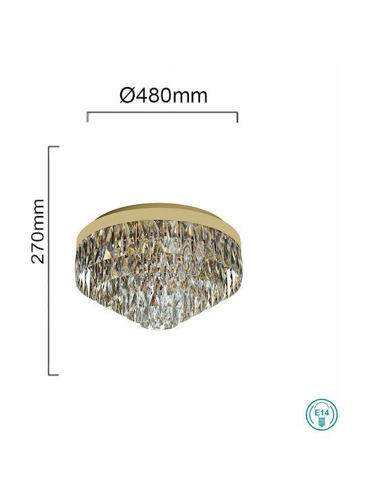 Φωτιστικό Πλαφόν Οροφής Ø48xH27cm Οκτάφωτο 8xE14 Χρυσαφί -Διάφανα Κρύσταλλα Eglo Valparaiso 39457