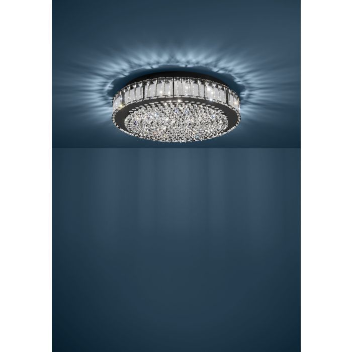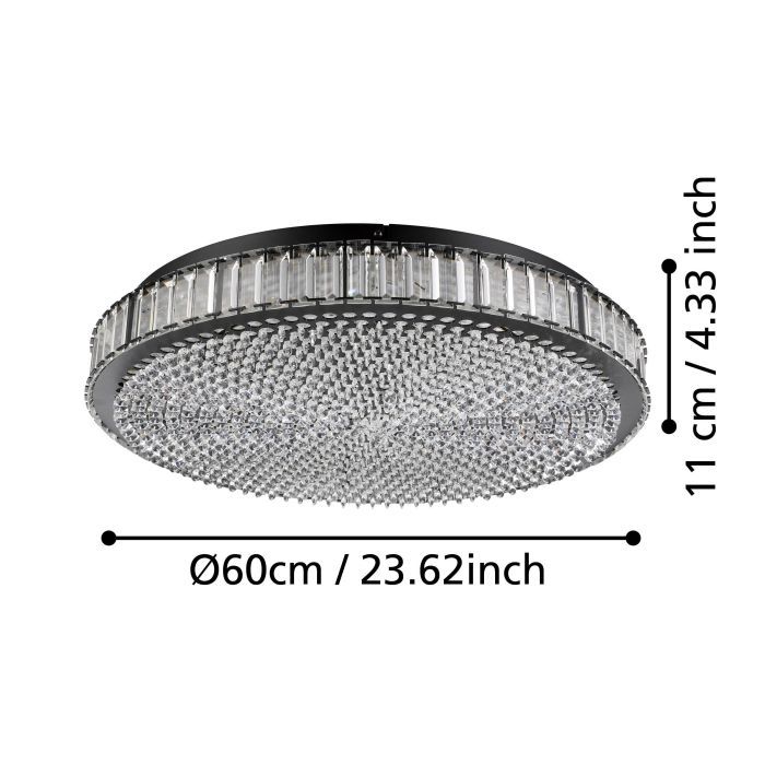 Φωτιστικό Πλαφόν Οροφής Ø60,5xH11cm Led 4x5,6 watt 3120lm Neutral Dimmable Μαύρο-Διάφανα Κρύσταλλα Eglo Balparda 390249