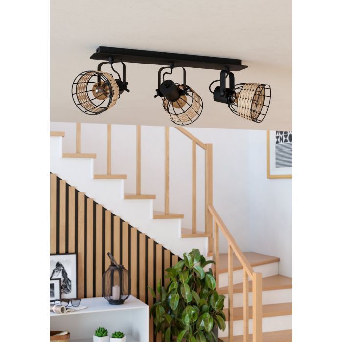 Φωτιστικό Ράγα Σποτ Τρίφωτη L670xH240mm 3xE27 Μαύρο Ράταν Eglo Anwick 1 43326
