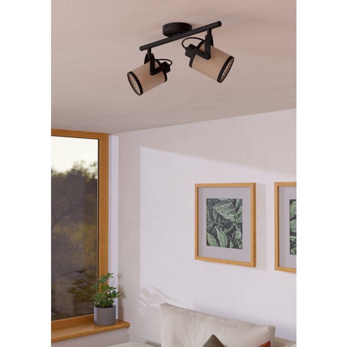 Φωτιστικό Σποτ Δίφωτο L440xH175mm 2xE27 Μαύρο-Φυσικό Eglo Ruscomb 43494