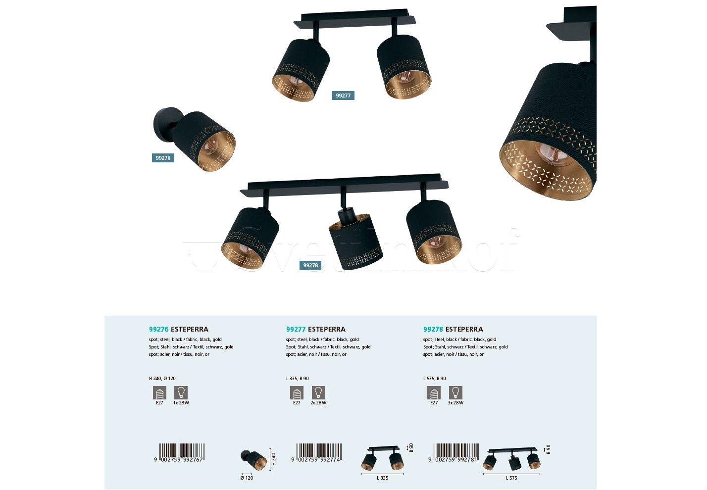 Φωτιστικό Σποτ Τρίφωτο 33,50 εκ. Ø12 εκ. 3*Ε27 Μαύρο -Χρυσό Eglo Esteperra 99278Ειδική Τιμή 86,90 € Κανονική τιμή 107,80 €