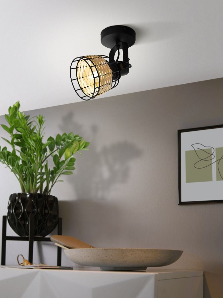 Φωτιστικό Σποτ Μονόφωτο L480xH240mm 1xE27 Μαύρο Ράταν Eglo Anwick 1 43324