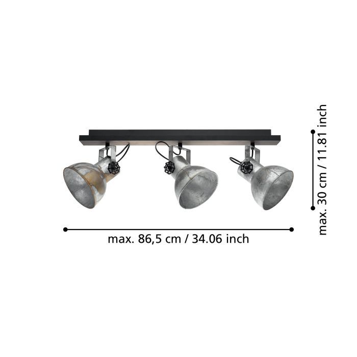 Φωτιστικό Σποτ Οροφής Τρίφωτο 75cm Vintage Industrial Μέταλλο -Ξύλο Πατίνα Eglo Barnstaple 49652