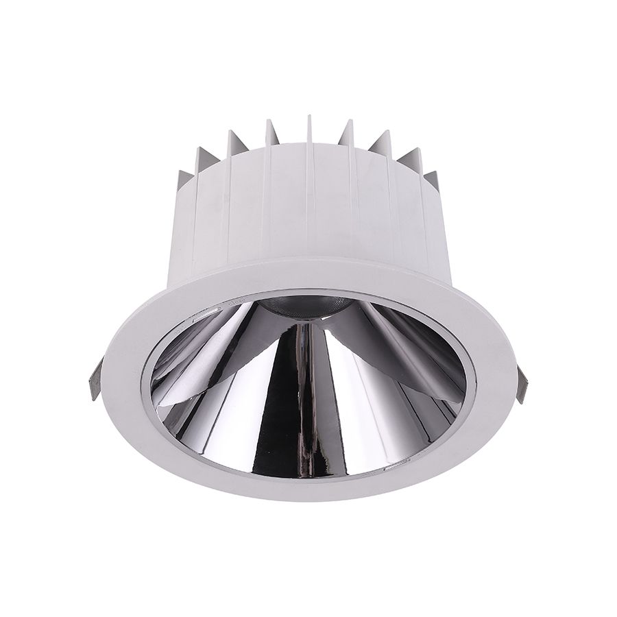 Φωτιστικό σποτ χωνευτό σε άσπρο χρώμα με ανακλαστήρα χρωμίου.