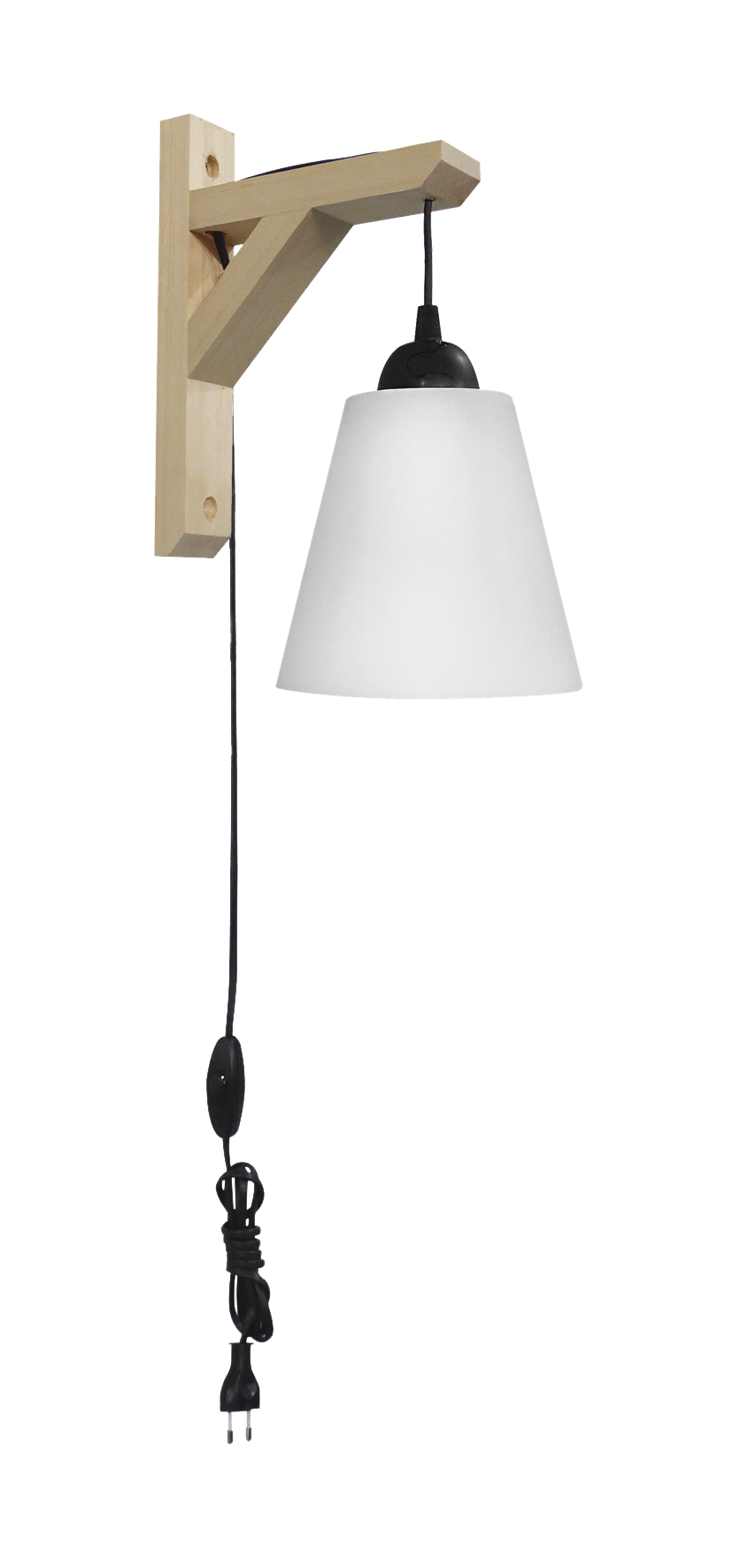 Απλίκα τοίχου ξύλινη FUN-01AP FIS BL-WH Τεχνικά χαρακτηριστικά ξύλινη με καλώδιο μαύρο & διακόπτη για πρίζα Χρώμα φυσικό ξύλο / μαύρο/black / κώνος πλαστικός λευκός H32 x 25 x Φ16cm E/27 max 10W LED Ελληνικό Προϊόν