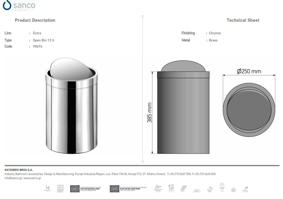 Χαρτοδοχείο Ανοιχτό 12lt Χρωμέ Sanco Open Bins 90664-A03Ειδική Τιμή 67,50 € Κανονική τιμή 75,00 € -