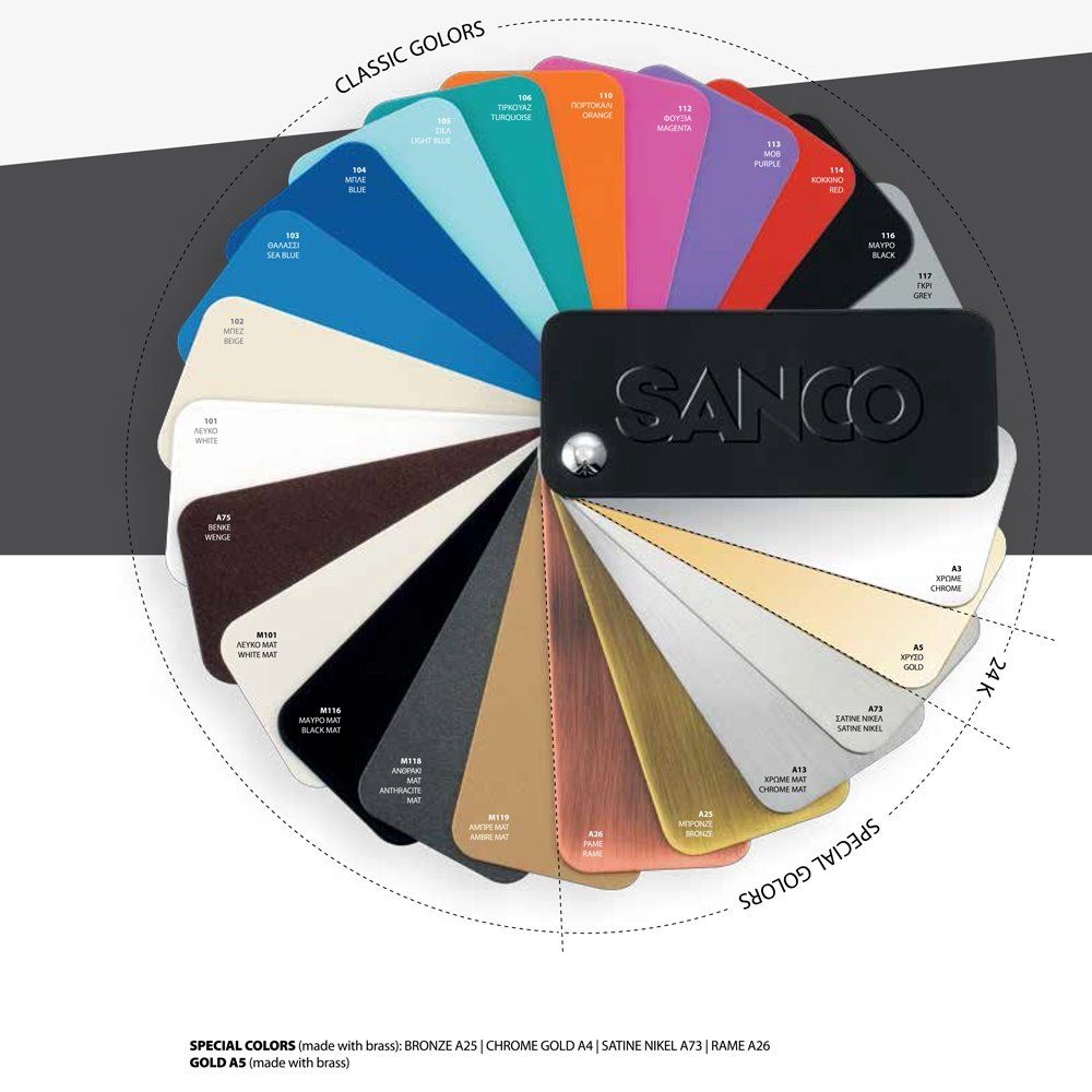 Διατίθεται σε φινίρισμα: Chrome, Graphite Dark, White Mat, Beige Mat, Black Mat, Antracite Grained, Dark Bronze Mat, Gun Metal, Brushed Nickel, Brass Brushed, Brushed Gun Metal. Bronze Mat, Old Copper Mat.