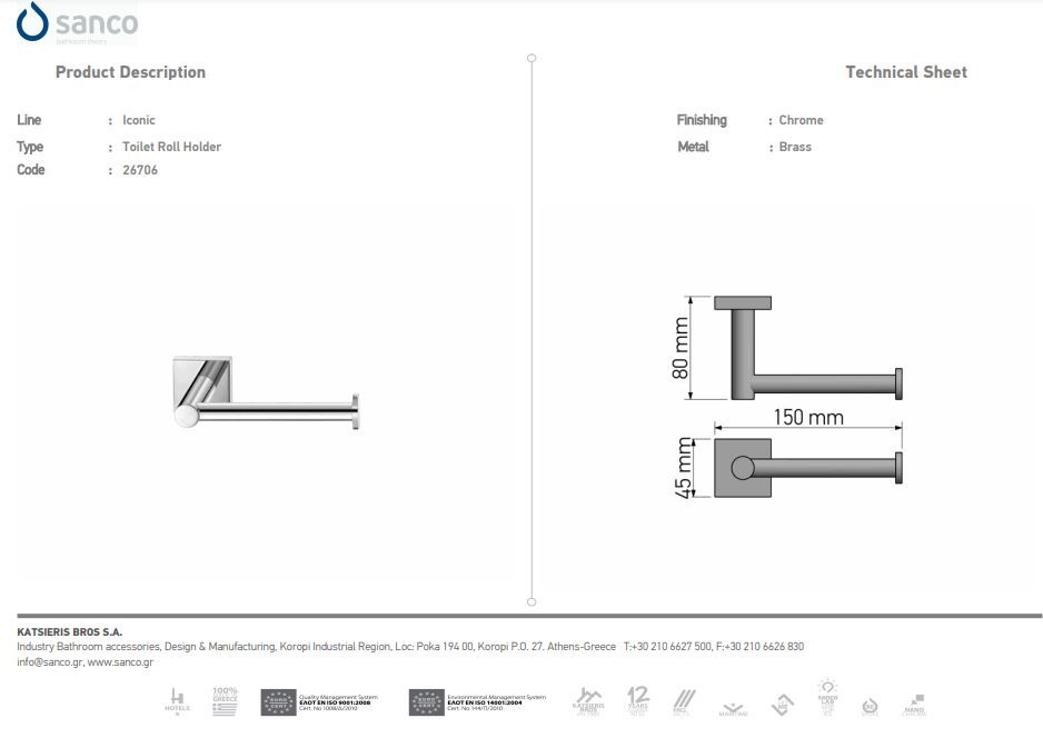 Χαρτοθήκη Ανοιχτή Χρωμέ Sanco Iconic 26706-A03