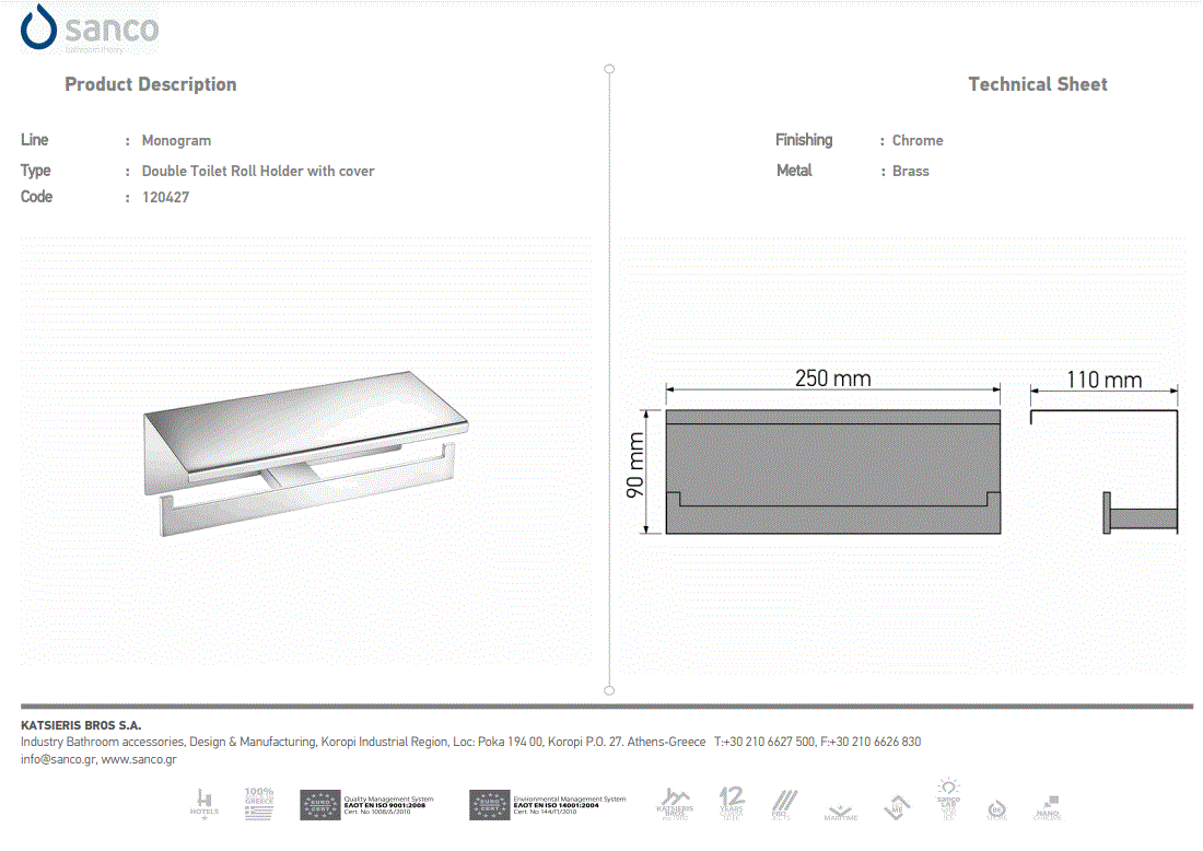 - Χαρτοθήκη Επιτοίχια Black Mat Sanco Monogram 120406-M116 Ειδική Τιμή 40,50 € Κανονική τιμή 45,00 €