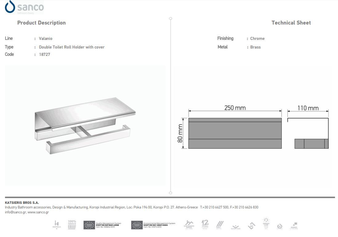Χαρτοθήκη Διπλή με Καπάκι Sanco Valanio Chrome 18727-A03