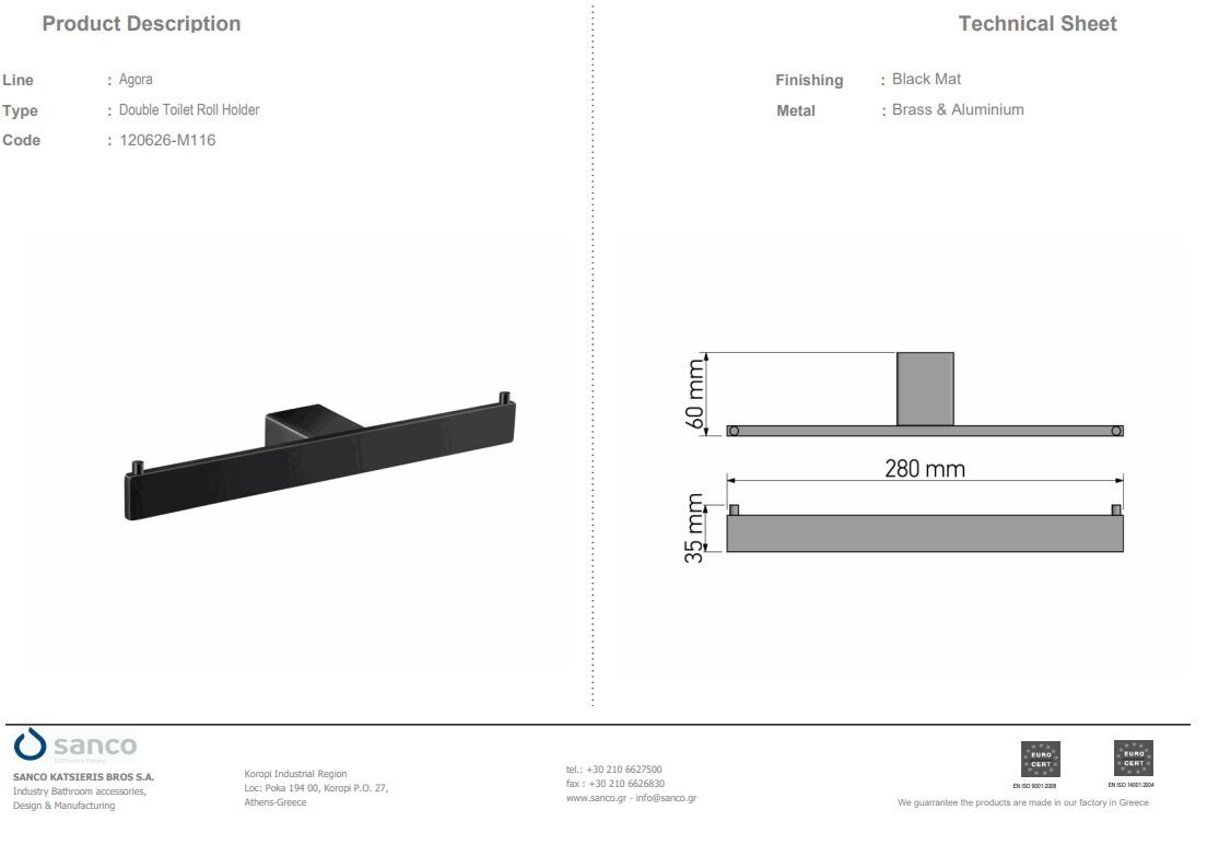 Χαρτοθήκη Επιτοίχια Black Mat Sanco Agora 120606-M116Ειδική Τιμή 22,50 € Κανονική τιμή 25,00 € -