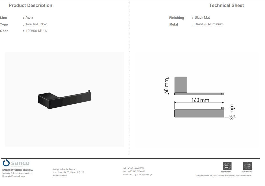Χαρτοθήκη Επιτοίχια Black Mat Sanco Agora 120606-M116Ειδική Τιμή 22,50 € Κανονική τιμή 25,00 € -