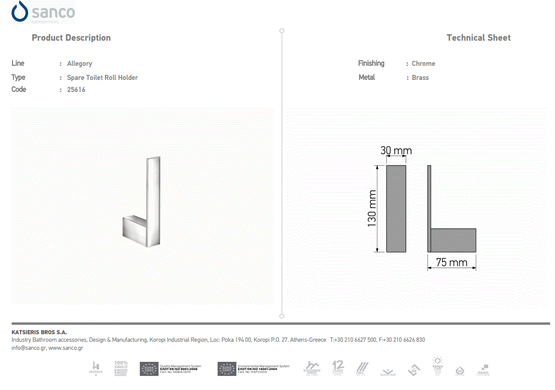 - Χαρτοθήκη Επιτοίχια Brushed Brass-Black Mat Sanco Allegory 25606-AB12-M116 Ειδική Τιμή 117,00 € Κανονική τιμή 150,00 €