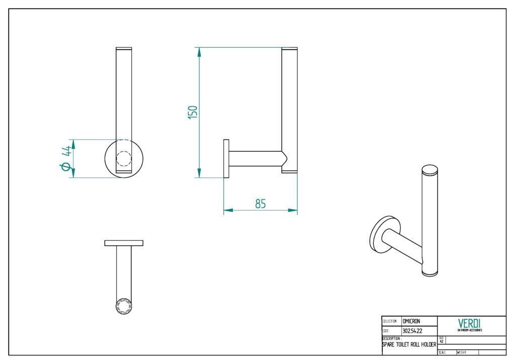 Χαρτοθήκη Εφεδρική W44xD85xH150mm Gun Metal Gloss Verdi Omicron 3025450
