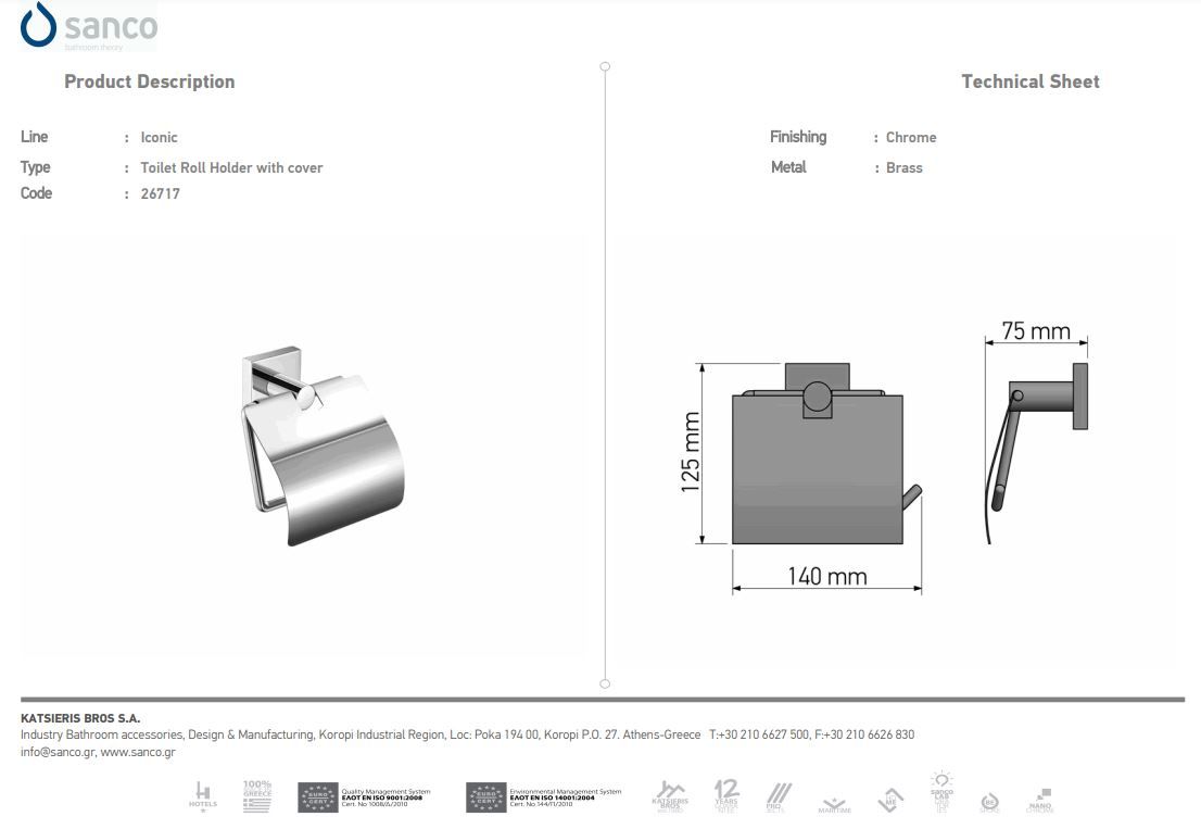 Χαρτοθήκη με Καπάκι Sanco Iconic Brushed Nikel 26717-A73