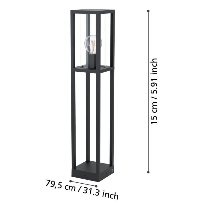 Μήκος Φωτιστικού(σε χιλ./ίντσα):150 / 5,91Πλάτος Φωτιστικού(σε χιλ./ίντσα):150 / 5,91Ύψος Φωτιστικού(σε χιλ./ίντσα):795 / 31,3Καθαρό Βάρος (kg):2,39