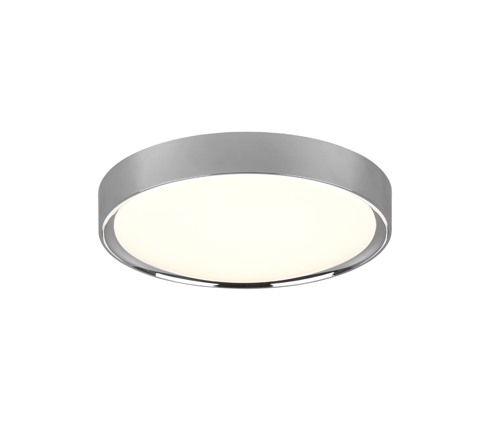 Μοντέρνα πλαφονιέρα οροφής της Trio Lighting σε ασημί χρώμα, από πλαστικό. Διαθέτει ενσωματωμένο LED, το οποίο εκπέμπει θερμό λευκό φως που αποδίδεται στην κλίμακα Kelvin με τιμές από 2400Κ έως 3800Κ. Αυτοί οι τόνοι του λευκού είναι πιο κίτρινοι σε σχέση με το φυσικό φως.