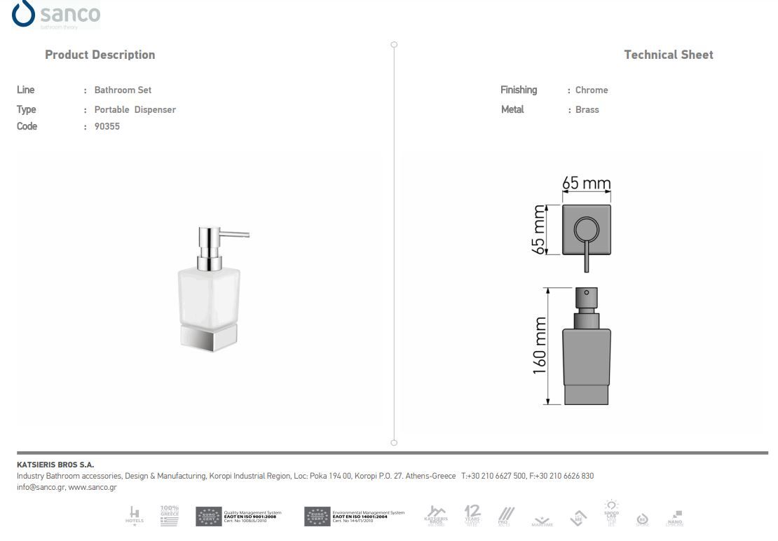 Dispenser Αντλία Σαπουνιού Επικαθήμενη Black Mat Sanco Glass Bathroom Set 90355-M116