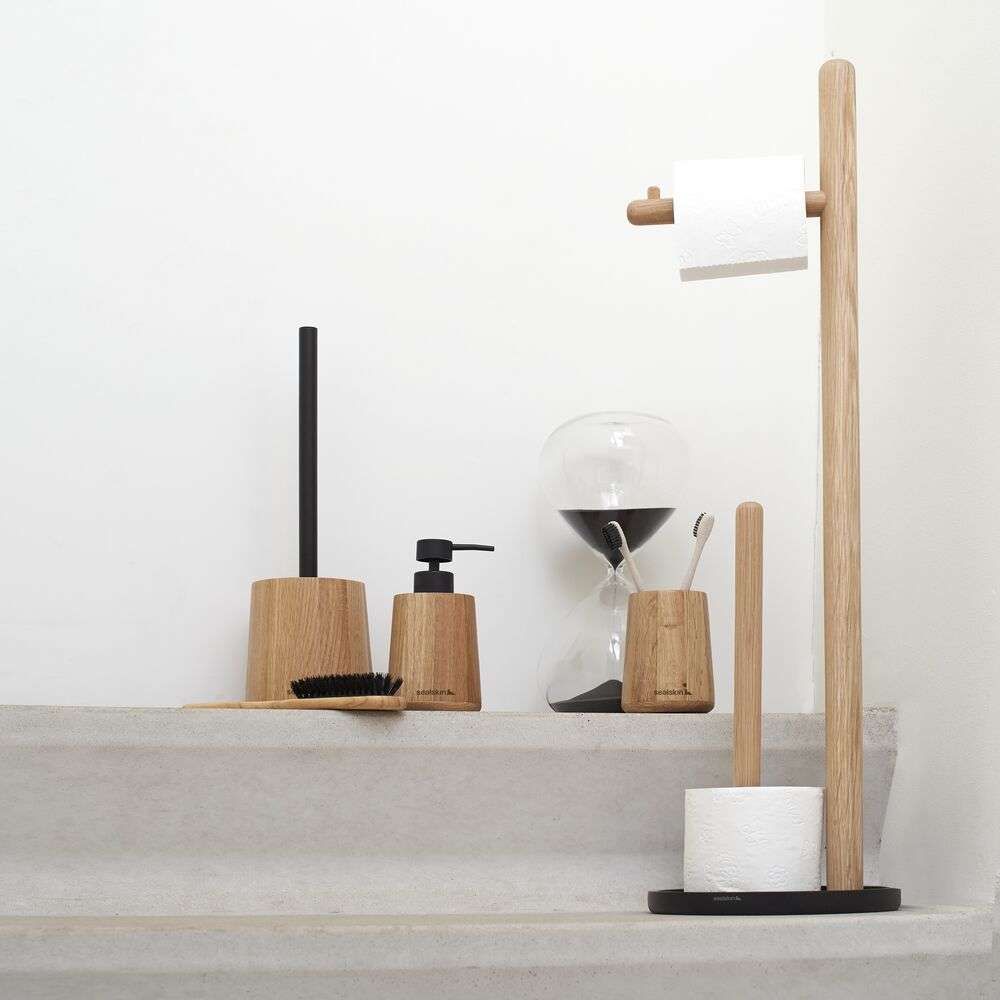Φέρτε τη φύση στο σπίτι σας με αυτή τη θήκη για ρολό τουαλέτας και τη θήκη για ανταλλακτικό ρολό τουαλέτας από τη Sealskin. Η θήκη Earth σας κάνει αμέσως ένα με τη φύση. Το οργανικό σχήμα της ξύλινης ράβδου της δίνει μια φυσική αλλά και σταθερή εμφάνιση. Στερεό και κομψό.